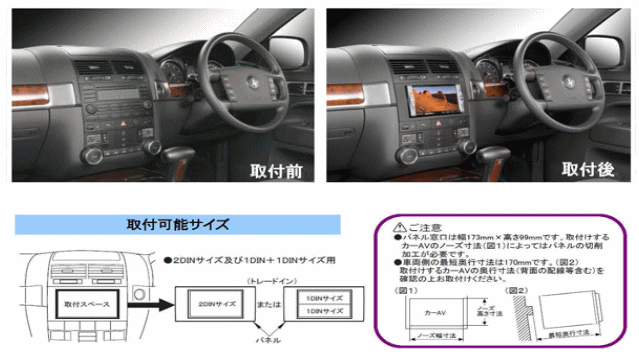 注6) メーカーオプションのクラリオンAVナビ付車は取付けできません 注7) メーカーオプションのナビゲーション(ナビ機能付VWマルチメディアステーション)付車にも取付けできます。