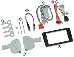 【主要構成部品】 (1)パネル (2)ブラケットL/R (3)純正ナビゲーション取外し工具 (4)電源/フロントスピーカーコネクター(16P) (5)ACC電源用コード(赤) (6)イルミネーション電源用コード(橙/白) (7)トランスレーター (8)アンテナ変換アダプター (9)アンテナ/アンプリモート電源用変換コード その他 アウディ A3 MMS(マルチメディアステーション)DVDナビゲーション付車用 車種 年式 タイプ 取付数 型式 アウディ A3 H15/9〜H18/7(3ドア)H16/9〜H18/7(5ドア) 純正MMS付車(2DIN DVDナビ) 2D 8PAXW、8PAXX、8PBDBF、8PBGU、8PBLR、8PBLX、8PBMJF、8PBSE 注1) 純正1DINオーディオ付車には取付けできません。